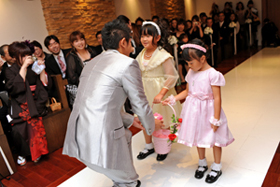 ご参列のちびっ子ちゃんにも、リングガール&先導のフラワーガールで大活躍!!