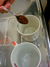小さじ2杯とお砂糖をカップに。