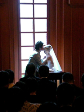 人前挙式。おでこに誓いのキス・・・。
