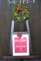 手作りウエルカムボードと一緒にリースも飾り、お客様をお出迎えです。