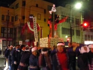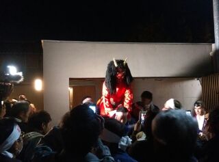 夜の7時になると厄男の赤鬼が現れ