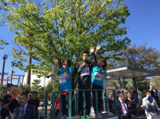 スタート地点にはQちゃんと野口みずきさんが手を振ってくれています