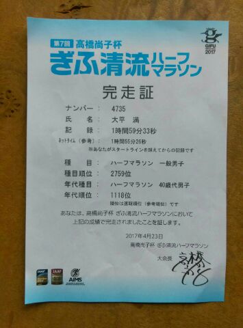タイムは1時間55分26秒!と、まずまずです