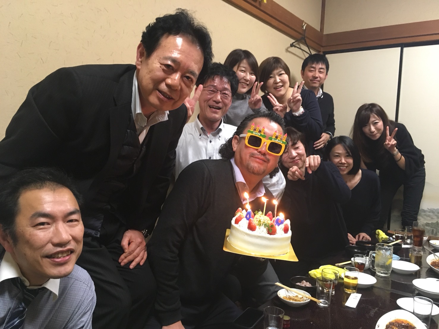 最後にサプライズケーキとサングラスが!