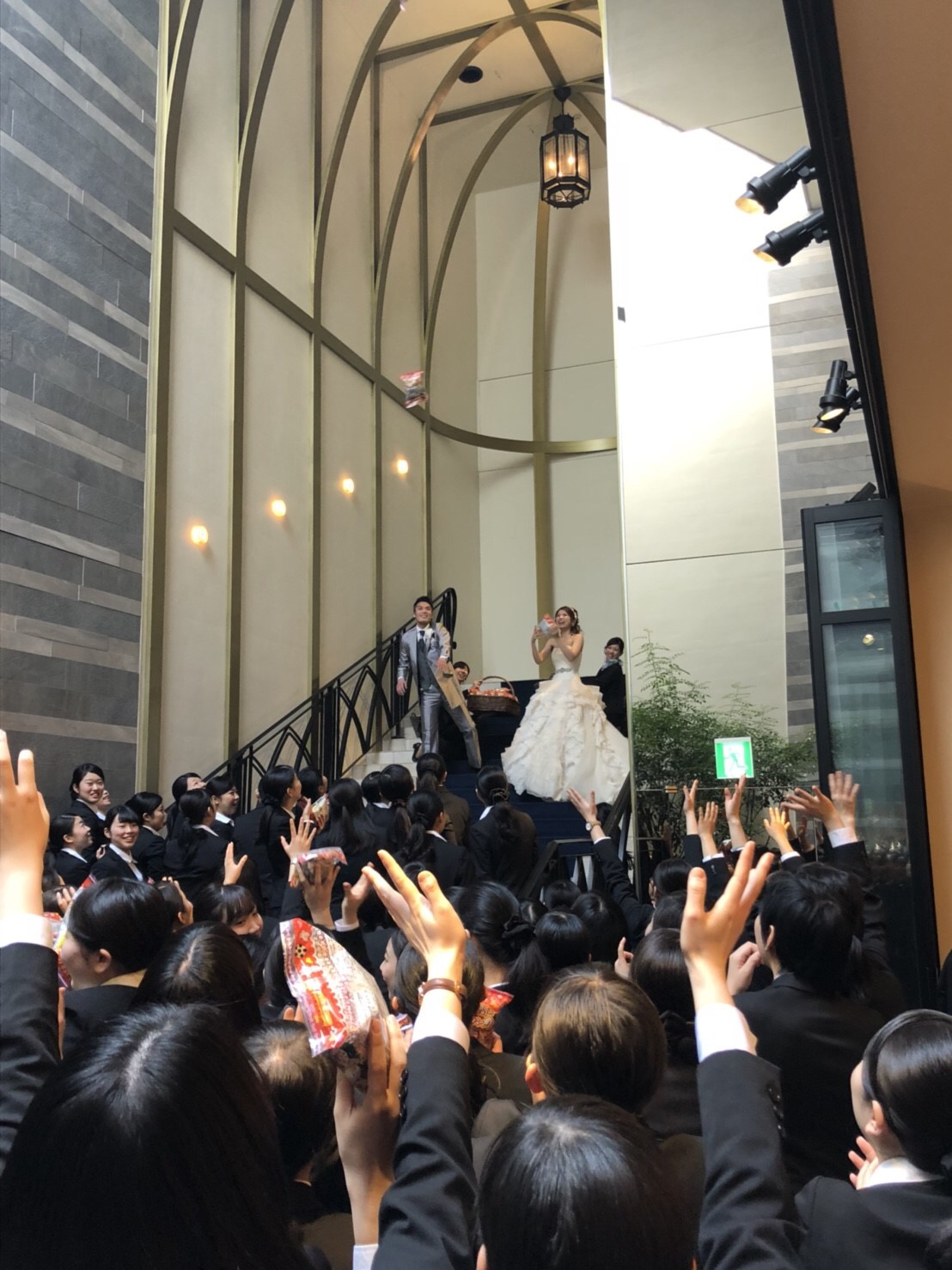 学生さんの緊張を取り払う為にお菓子まきを実施!