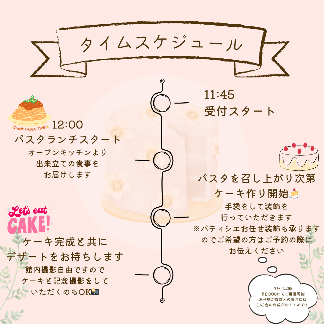 ※1グループにつき3号ケーキ1台+装飾サービス
