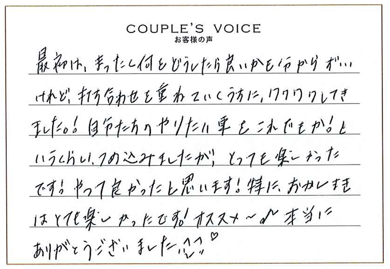 これからもおふたりらしい温かい素敵なご家庭を築かれてください。