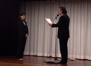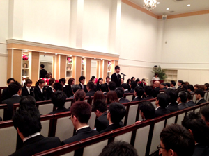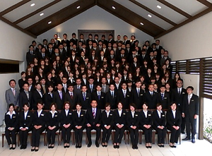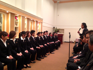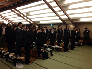 全社員でお迎えする入社式は