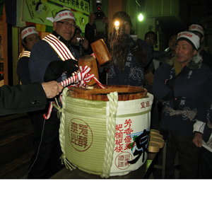 樽酒の鏡割りが行なわれ
