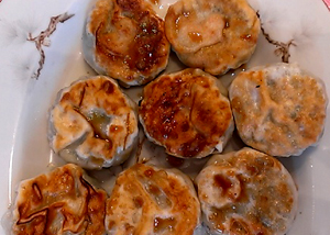 上がニラ餃子 下が海老をライスペーパーで巻いた春巻き