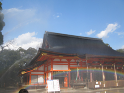 (ちょうど屋根に放水中で虹が出ていました)