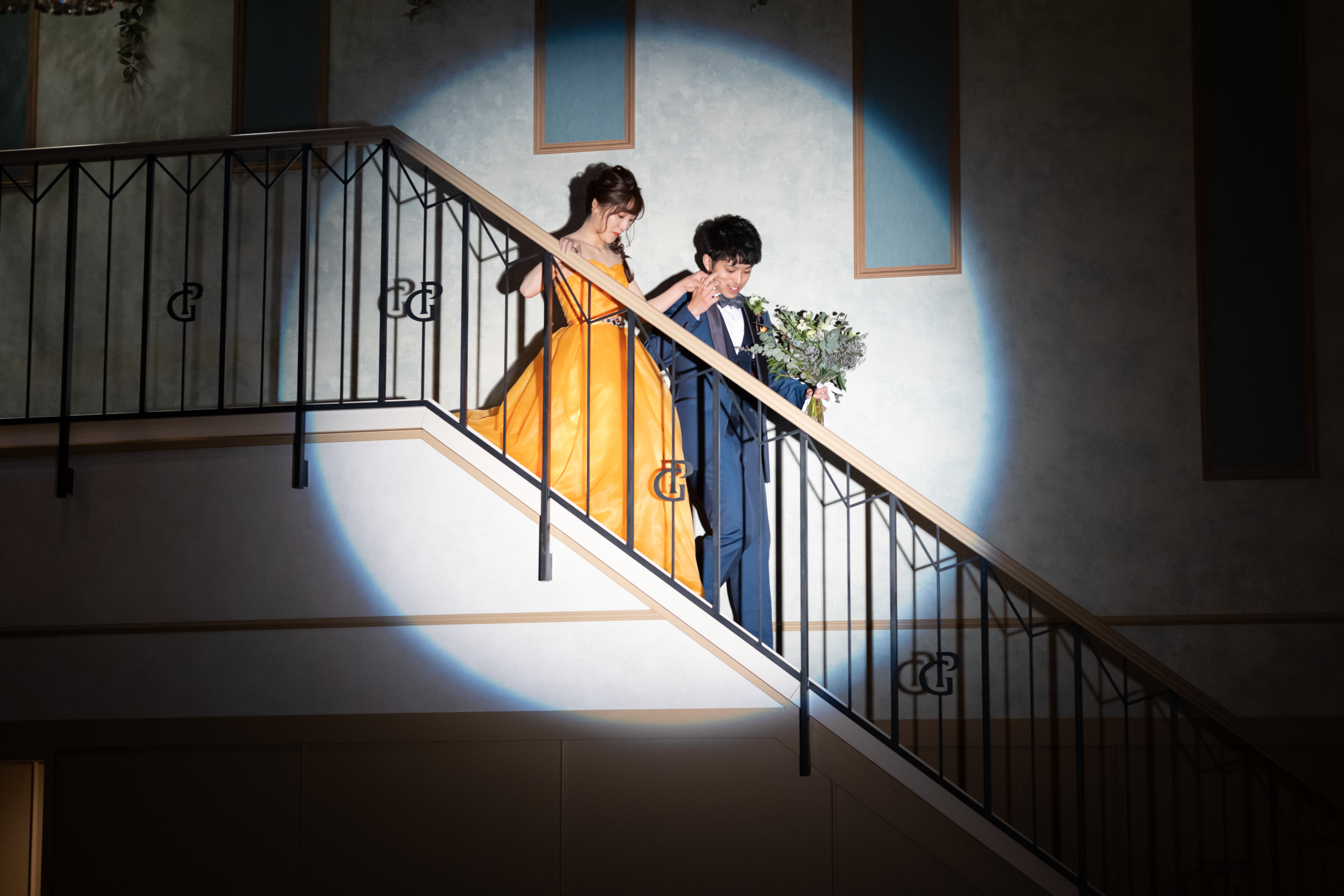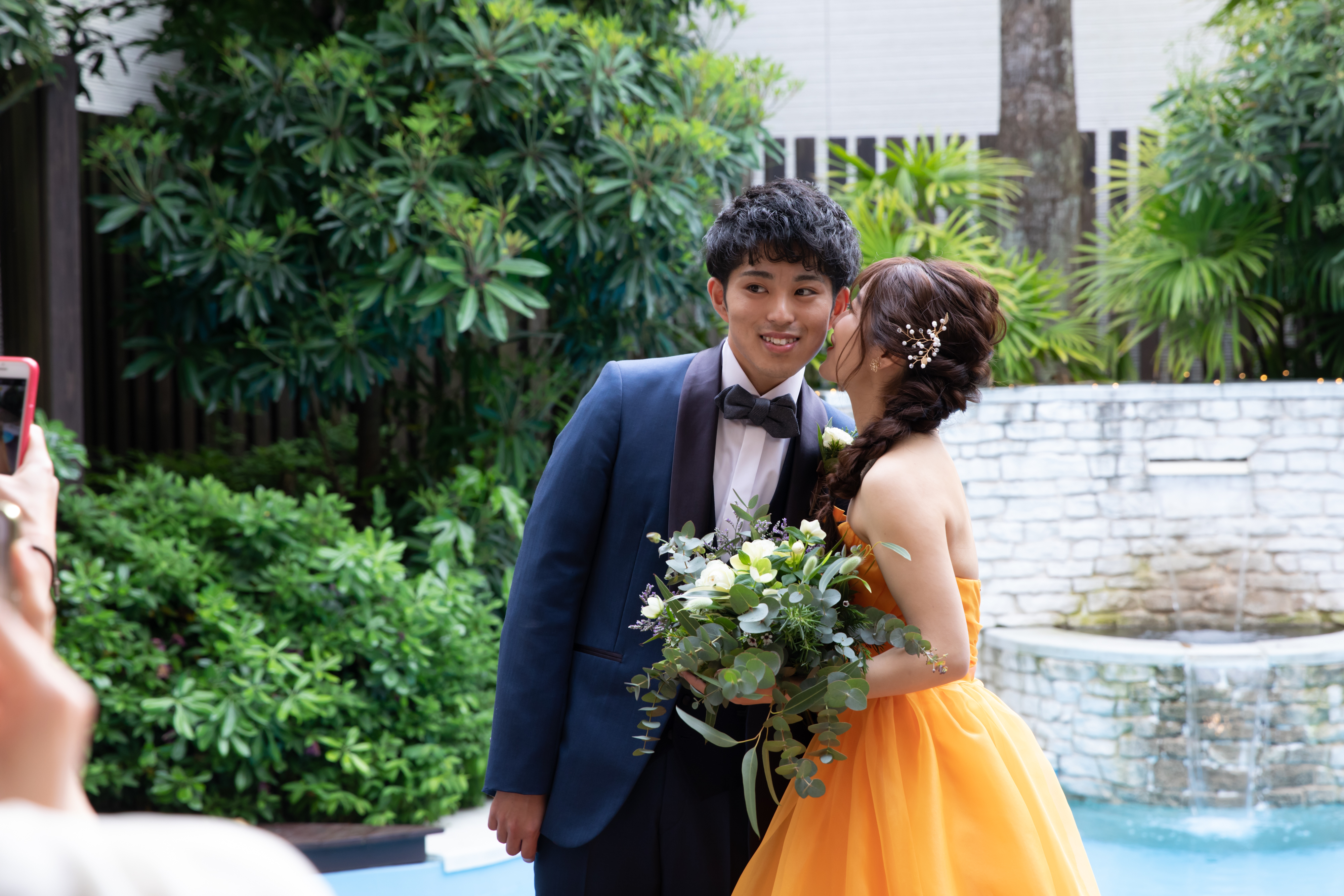 なんと!おふたりが着ておりますローブとカラードレスはご新婦様の手作りです。