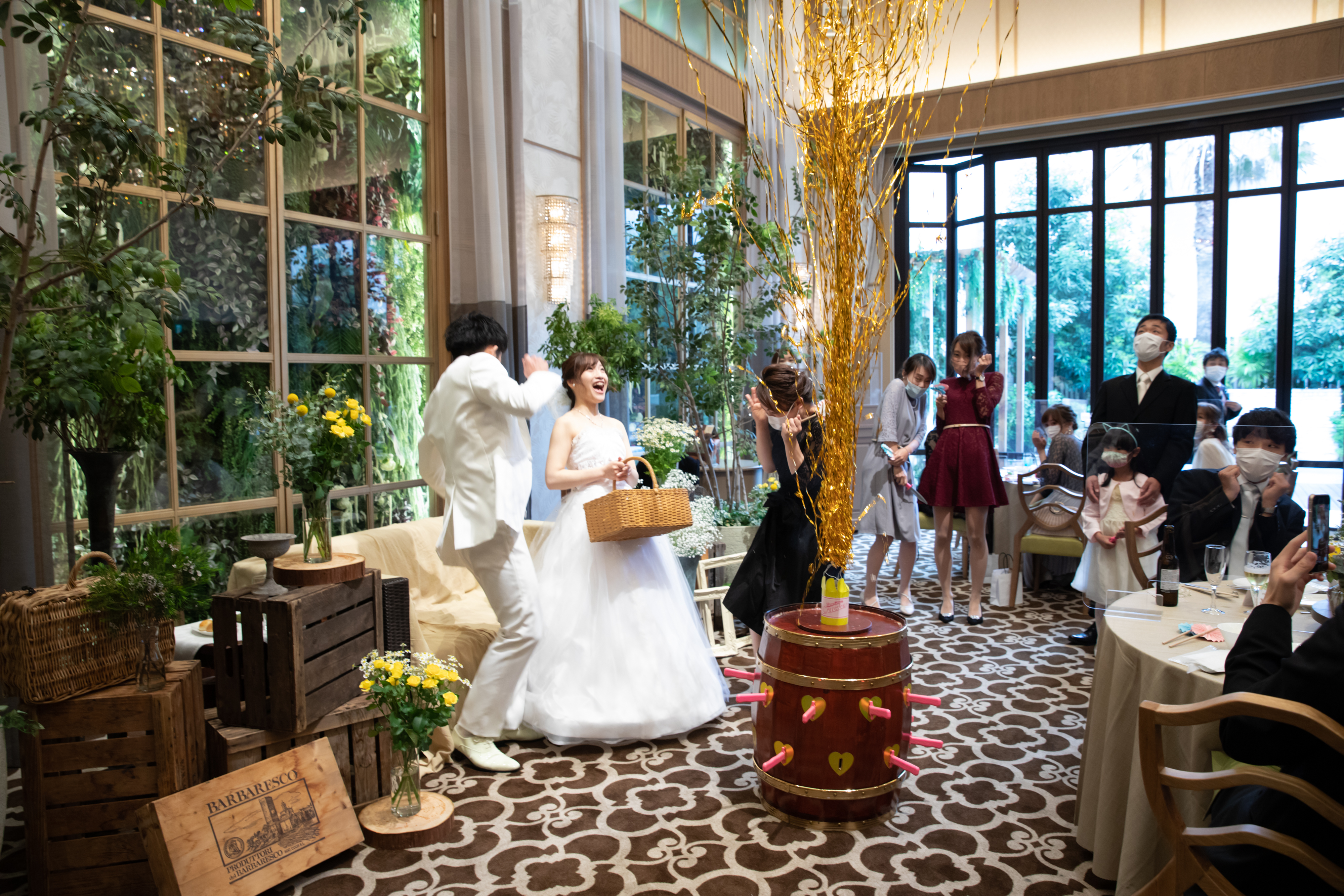 ある呪文を唱えご新婦様とラストのサプライズでプレゼントを登場させるといった